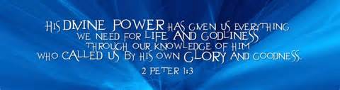 His divine power has given us everything we need for life and godliness through our knowledge of him who called us by his own glory and goodness. Through these he has given us his very great and precious promises, so that through them you may participate in the divine nature and escape the corruption in the world caused by evil desires. (2 Peter 1:3-4)